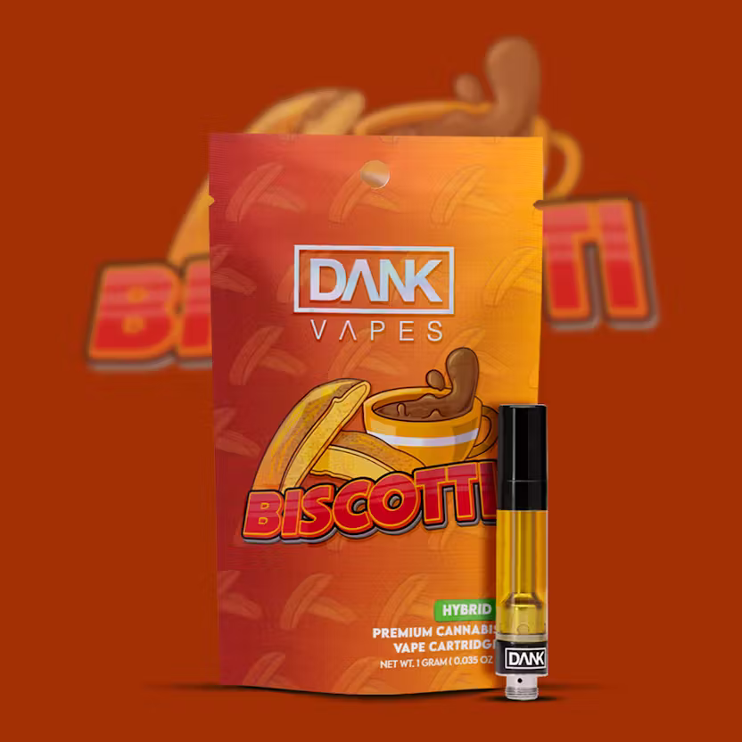 - Product: Dank Vapes Biscotti 1G THC Vape Cartridge